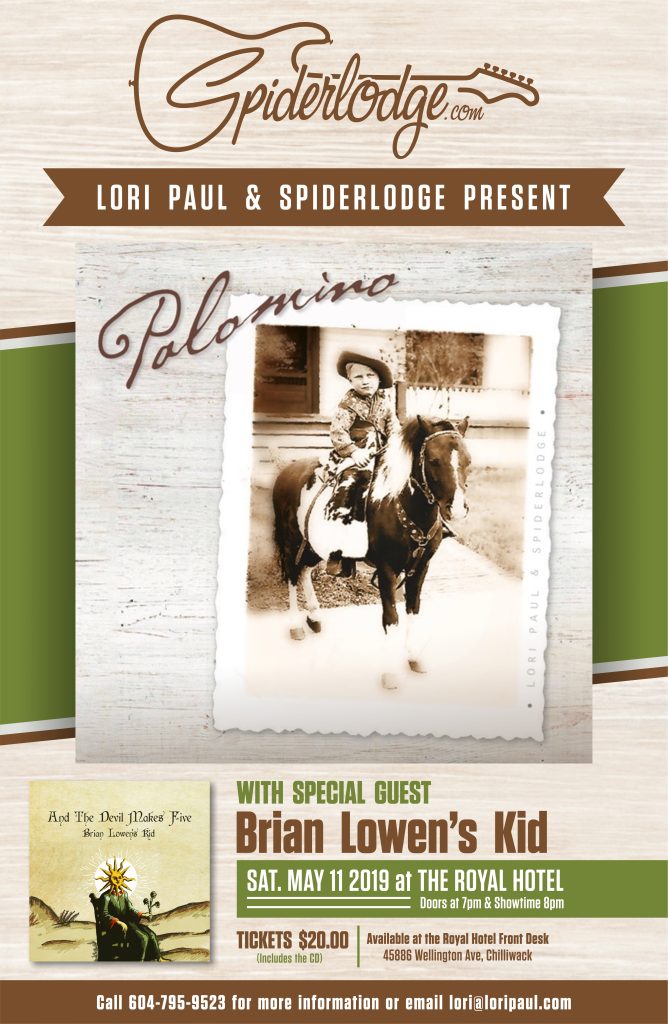We invite everyone to join us as we celebrate the release of our fifth album, Palomino, on Saturday, May 11th at the Royal Hotel in beautiful downtown Chilliwack! Our good buddy Brian Lowen’s Kid will play a set at 8pm, doors open at 7pm so come early if you have a large group who’d like to sit together. Tickets are $20. and include our CD upon arrival. $10. from each ticket sold will go to Community Animal Projects, a local group who help homeless pets find forever homes. You can pick up your tickets at the front desk of the Royal Hotel (cash sales only, sorry for any inconvenience).